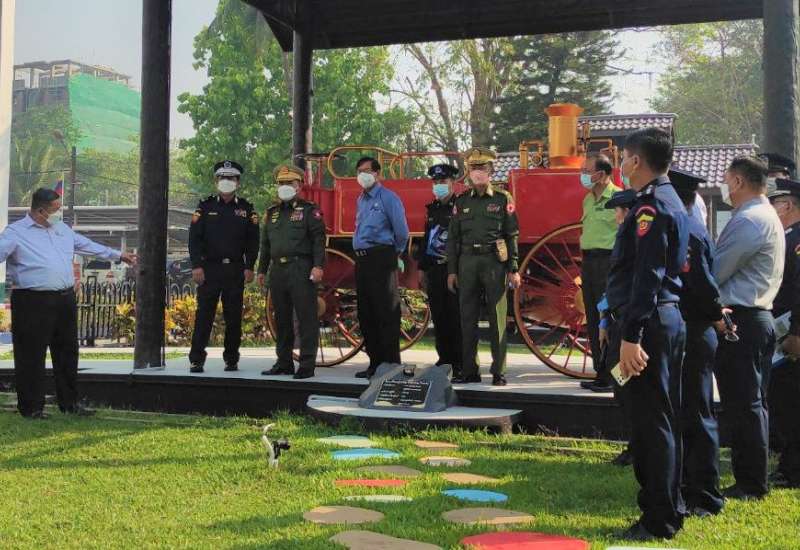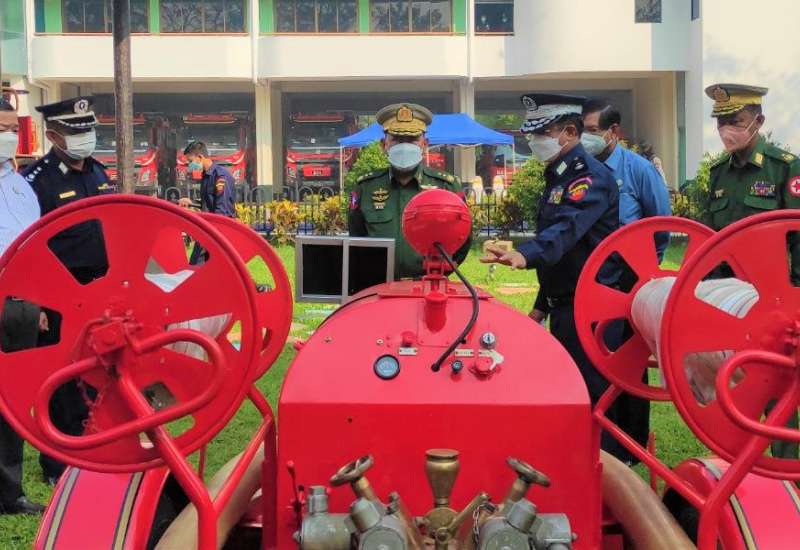 နိုင်ငံတော်စီမံအုပ်ချုပ်ရေးကောင်စီအဖွဲ့ဝင်၊ ပြည်ထဲရေးဝန်ကြီးဌာန၊ ပြည်ထောင်စုဝန်ကြီး ဒုတိယဗိုလ်ချုပ်ကြီး စိုးထွဋ်သည် ယနေ့နံက်(၈)နာရီတွင် ရန်ကုန်တိုင်းဒေသကြီး၊ မရမ်းကုန်းမြို့နယ်ရှိ မြန်မာနိုင်ငံမီးသတ်တပ်ဖွဲ့ဌာနချုပ် လေကျင့်ရေးကွင်းအတွင်း မီးသတ်တပ်ဖွဲ့ဝင်များ၏ စွမ်းဆောင်ရည်မြှင့်တင်ရေး တစ်ကိုယ်ရည်စွမ်း ရည်ပြပြိုင်ပွဲနှင့် မီးငြိမ်းသတ်ရေး၊ ရှာဖွေကယ်ဆယ်ရေးနှင့် အရေးပေါ်သူနာတင်ယာဉ် ဝန်ဆောင်မှုလုပ်ငန်းများ သရုပ်ပြသမှုတို့အား ကြည့်ရှုအားပေးသည်။