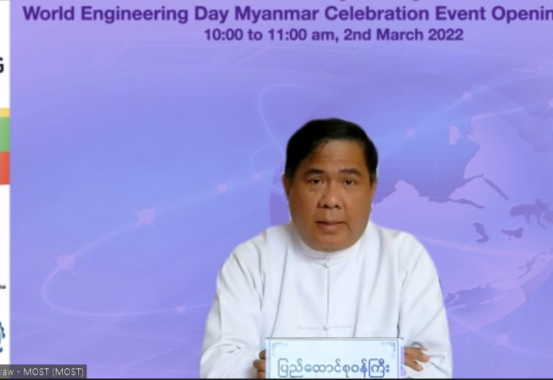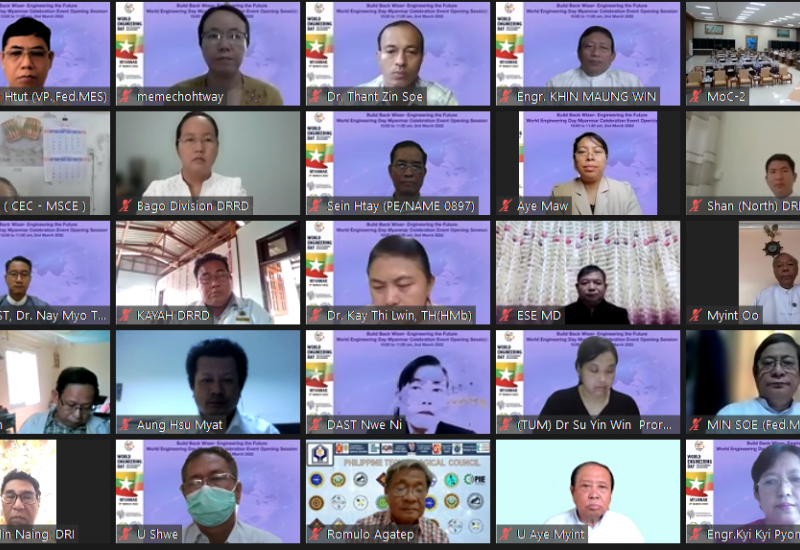 ၂၀၂၂ ခုနှစ် မတ် ၄ ရက်တွင် ကျရောက်သည့် World Engineering Day အထိမ်းအမှတ် မြန်မာနိုင်ငံ အင်ဂျင်နီယာကောင်စီနှင့် မြန်မာနိုင်ငံ အင်ဂျင်နီယာအသင်းချုပ်တို့ ပူးပေါင်းကျင်းပသည့် World Engineering Day Myanmar Celebration Event အခမ်းအနားကို ယနေ့ နံနက် ၁၀ နာရီတွင် မြန်မာနိုင်ငံ အင်ဂျင်နီယာအသင်းချုပ် အစည်းအဝေးခန်းမ၌ ကိုဗစ်-၁၉ စည်းကမ်းချက်များနှင့်အညီ Online စနစ်ဖြင့် ကျင်းပသည်။