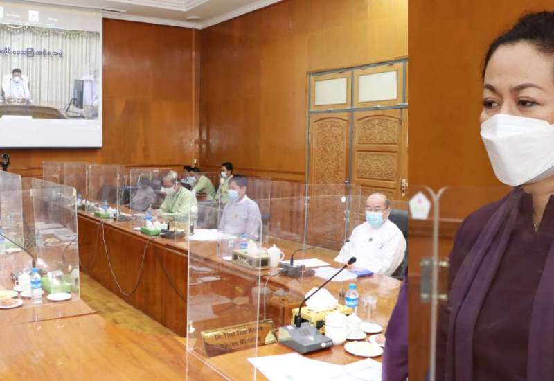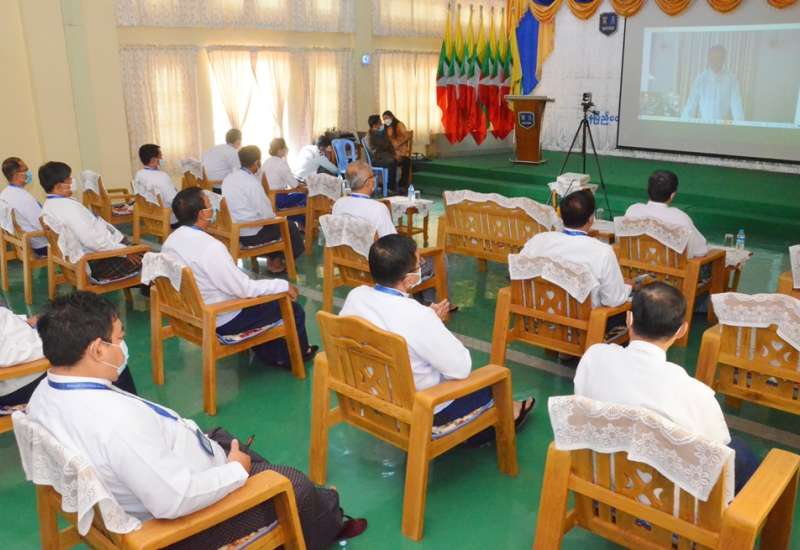 လူမှုဝန်ထမ်း၊ ကယ်ဆယ်ရေးနှင့် ပြန်လည်နေရာချထားရေး ဝန်ကြီးဌာနက တာဝန်ယူ၍ ဧရာဝတီတိုင်းဒေသကြီးအတွင်း အကောင်အထည်ဖော်လျက်ရှိသော ကိုယ်ဝန်ဆောင် မိခင်များနှင့် ၎င်းတို့မှမွေးဖွားလာသော အသက်(၂)နှစ်အောက် ကလေးသူငယ်များကို ငွေကြေးအထောက်အပံ့ပေးရေးအစီအစဉ် (MCCT) အကောင်အထည်ဖော်ရေးဆိုင်ရာ လုပ်ငန်းညှိနှိုင်းအစည်းအဝေးနှင့် အဆိုပါအစီအစဉ်အတွက် ထောက်ပံ့ကြေးငွေ လွှဲပြောင်းပေးအပ်ခြင်း အခမ်းအနားကို ယနေ့ နံနက် ၁၀ နာရီတွင် Online စနစ်ဖြင့် ကျင်းပရာ လူမှုဝန်ထမ်း၊ ကယ်ဆယ်ရေးနှင့် ပြန်လည်နေရာချထားရေး ဝန်ကြီးဌာန၊ ပြည်ထောင်စုဝန်ကြီး ဒေါက်တာသက်သက်ခိုင်၊ ဧရာဝတီတိုင်းဒေသကြီး အစိုးရအဖွဲ့၊ တိုင်းဒေသကြီးဝန်ကြီးချုပ် ဦးတင်မောင်ဝင်းနှင့် တာဝန်ရှိသူများ တက်ရောက်ကြသည်။