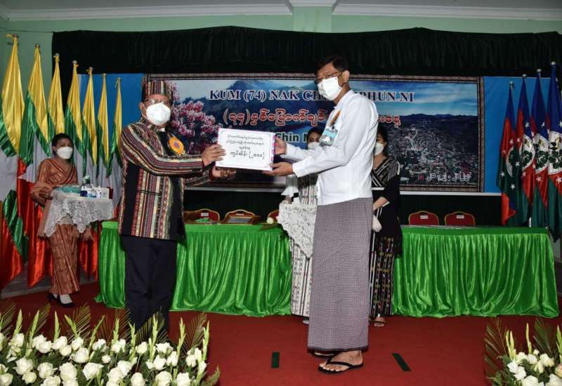 ၂၀၂၂ ခုနှစ် (၇၄)နှစ်မြောက် ချင်းအမျိုးသားနေ့ အခမ်းအနားကို နေ့လယ် ပိုင်းတွင် ဟားခါးမြို့၊ ချင်းပြည်နယ်အစိုးရအဖွဲ့ရုံး၊ အစည်းအဝေးခန်းမ၌ ကျင်းပ ပြုလုပ်ခဲ့ရာ အခမ်းအနားသို့ နိုင်ငံတော်စီမံအုပ်ချုပ်ရေးကောင်စီအဖွဲ့ဝင် ကာကွယ်ရေးဝန်ကြီးဌာန၊ ပြည်ထောင်စုဝန်ကြီး ဗိုလ်ချုပ်ကြီး မြထွန်းဦးနှင့် အဖွဲ့ဝင် ဦးမောင်းဟာတို့ တက်ရောက်ကြသည်။