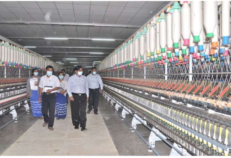 စက်မှုဝန်ကြီးဌာန၊ ပြည်ထောင်စုဝန်ကြီး ဒေါက်တာချာလီသန်းသည် ဖေဖော်ဝါရီ (၁၃) ရက် နံနက်ပိုင်းတွင် မန္တလေးတိုင်းဒေသကြီး၊ မြစ်သားမြို့ရှိ အမှတ် (၇) အထည်စက်ရုံကို ကြည့်ရှုစစ်ဆေးသည်။