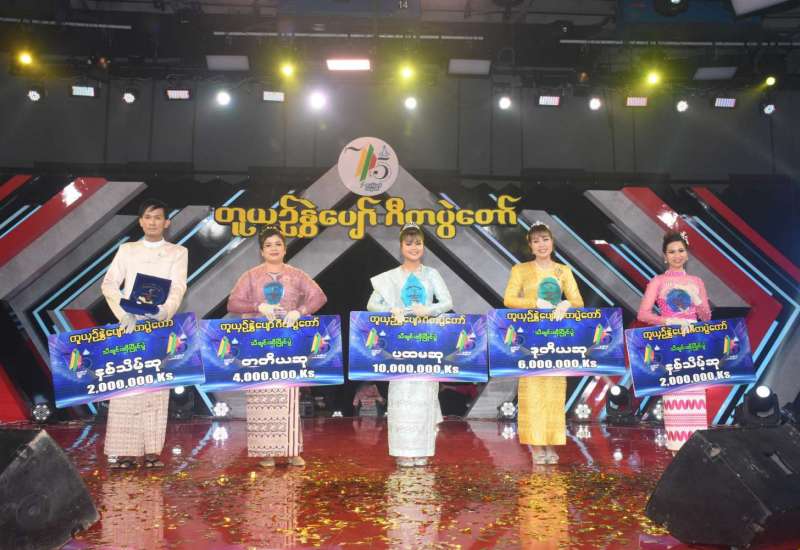 စိန်ရတုပြည်ထောင်စုနေ့ အထိမ်းအမှတ် တူယှဉ်နွှဲပျော်ဂီတပွဲတော် Grand Final တတိယအဆင့် သီချင်းသီဆိုမှု ပြိုင်ပွဲနှင့် ဆုချီးမြှင့်ပွဲ တိုက်ရိုက် (Live) ရိုက်ကူးထုတ်လွှင့်မှုကို ယမန်နေ့ညပိုင်းက ရန်ကုန်မြို့ရန်ကင်းမြို့နယ် ပြည်သာယာရှိ မြဝတီ မီဒီယာစင်တာ၌ ကျင်းပရာ ရန်ုကုန်တိုင်းစစ်ဌာနချုပ် တိုင်းမှူး ဗိုလ်ချုပ်ညွန့်ဝင်းဆွေ ရန်ကုန်တိုင်းဒေသကြီး အစိုးရအဖွဲ့ လုံခြုံရေးနှင့် နယ်စပ်ရေးရာဝန်ကြီး ဗိုလ်မှူးကြီး ဝင်းတင့်၊ ရန်ကုန်မြို့တော်စည်ပင် သာယာရေး ကော်မတီဥက္ကဋ္ဌ မြို့တော်ဝန် ဦးဗိုလ်ဌေး၊ ဧရာဝတီတိုင်းဒေသကြီးအစိုးရအဖွဲ့ လူမှုရေးဝန်ကြီး ဦးမောင်မောင်သန်းနှင့် တာဝန်ရှိသူများ တက်ရောက်ကြည့်ရှု အားပေးကြသည်။