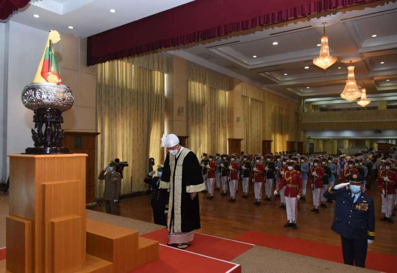 ၂၀၂၂ ခုနှစ် (၇၅) နှစ်မြောက် စိန်ရတုပြည်ထောင်စုနေ့ ဂုဏ်ပြုအခမ်းအနား၌ အလေးပြုခြင်းခံယူမည့် ပြည်ထောင်စုအလံတော်အား ရန်ကုန်မြို့မှ နေပြည်တော်သို့ သယ်ဆောင်ခြင်း အခမ်းအနားကို ယနေ့ နံနက်ပိုင်းတွင် ကိုဗစ်-၁၉ ရောဂါဆိုင်ရာ စည်မျဉ်းစည်းကမ်းများနှင့်အညီ ကျင်းပသည်။
