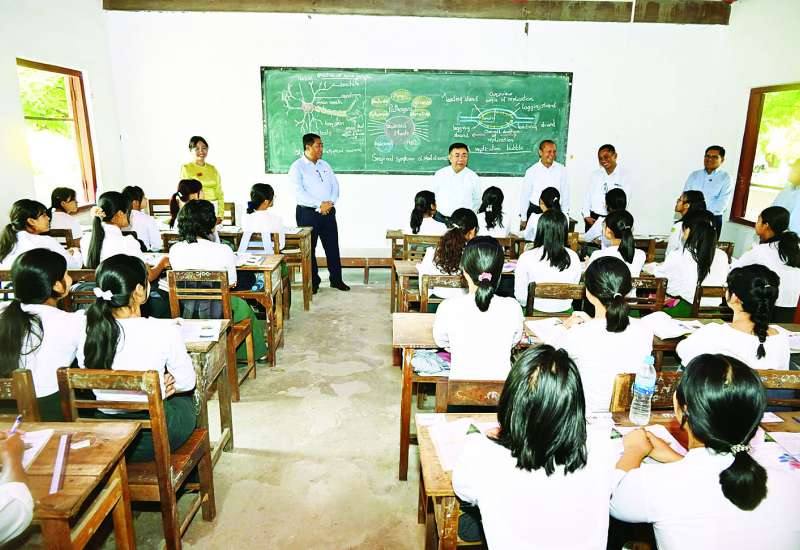 ပညာရေးဝန်ကြီးဌာန ပြည်ထောင်စုဝန်ကြီး ဒေါက်တာ ညွန့်ဖေသည် ဒုတိယဝန်ကြီး ဦးနေမျိုးလှိုင်၊ တာဝန်ရှိသူများနှင့်အတူ ယနေ့နံနက်ပိုင်းတွင် မန္တလေးတိုင်းဒေသကြီးရှိ အခြေခံပညာကျောင်းများသို့ သွားရောက်ကြည့်ရှုစစ်ဆေးသည်။