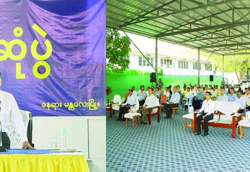 သမဝါယမနှင့်ကျေးလက်ဖွံ့ဖြိုးရေးဝန်ကြီးဌာန ပြည်ထောင်စုဝန်ကြီး ဦးလှမိုးသည် ဒုတိယဝန်ကြီး ဦးမြင့်စိုးနှင့်အတူ ယနေ့မွန်းလွဲပိုင်းက ဝန်ကြီးဌာနပိုင် မြေနေရာ၌ သမဝါယမဦးစီးဌာနနှင့် အသေးစားစက်မှုလက်မှုလုပ်ငန်းဦးစီးဌာနတို့မှ အရာထမ်း၊ အမှုထမ်းဝန်ထမ်းများ ယာယီနေထိုင်နိုင်ရေးစီစဉ်တည်ဆောက်ပေးနေသည့် အိမ်ရာများကိုလည်းကောင်း၊ အဆိုပါမြေနေရာနှင့် ရုံးသို့ဆက်သွယ်သော လမ်းဖောက်လုပ်နေမှုကိုလည်းကောင်း၊ သောက်သုံးရေရရှိရေးအတွက် ကျေးလက်ဒေသဖွံ့ဖြိုးတိုးတက်ရေးဦးစီးဌာနက စက်ရေတွင်းတူးဖော်နေမှုကိုလည်းကောင်း၊ ကွန်တိန်နာများ စီစဉ်ချထားမည့် မြေနေရာကိုလည်းကောင်း ကြည့်ရှုစစ်ဆေးကာ လမ်း၊ ရေ၊ မီး၊ မိလ္လာစနစ်များအပါအဝင် ဘာရှာများကို မေ ၁၅ ရက် ပြီးစီးအောင် ဆောင်ရွက်ရန်နှင့် ၁၇ ရက်တွင် ပြောင်းရွှေ့နေရာချထားပေးရန် မှာကြားသည်။