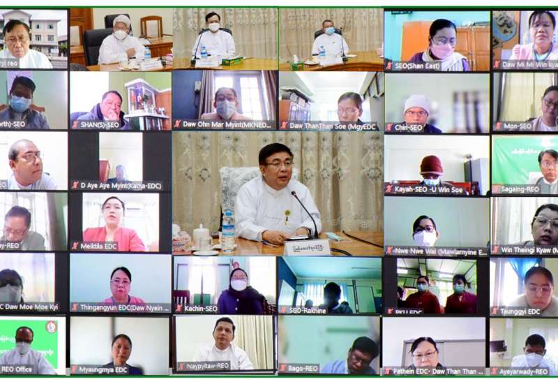 ပညာရေးဝန်ကြီးဌာန၊ ပြည်ထောင်စုဝန်ကြီးနှင့် ဆရာအတတ်ပညာဦးစီးဌာန၏ ပညာရေးဒီဂရီကောလိပ် ကျောင်းအုပ်ကြီးများနှင့် အခြေခံ ပညာဦးစီးဌာန၏ တိုင်းဒေသကြီး/ ပြည်နယ်ပညာရေးမှူးများ လုပ်ငန်းညှိနှိုင်းအစည်းအဝေးကို ယနေ့နံနက် ၉ နာရီခွဲတွင် ပညာရေးဝန်ကြီးဌာန ရုံးအမှတ်(၁၃)ရှိ အစည်းအဝေးခန်းမ၌ ဗီဒီယိုကွန်ဖရင့်စနစ်ဖြင့် ကျင်းပသည်။