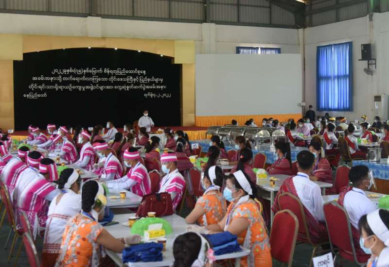 ၂၀၂၂ ခုနှစ်၊(၇၅)နှစ်မြောက် စိန်ရတုပြည်ထောင်စုနေ့ကျင်းပရေး စီမံခန့်ခွဲမှုကော်မတီဥက္ကဋ္ဌ၊ နေပြည်တော်ကောင်စီဥက္ကဋ္ဌ ဒေါက်တာ မောင်မောင်နိုင်သည် ယနေ့နံနက်ပိုင်းတွင် စိန်ရတုပြည် ထောင်စုနေ့အခမ်းအနားသို့ တက်ရောက်ဖျော်ဖြေကြမည့် တိုင်းဒေသကြီးနှင့် ပြည်နယ်များမှ တိုင်းရင်းသားယဉ်ကျေးမှုကိုယ်စားလှယ်အဖွဲ့များကို နေပြည်တော်ကောင်စီနယ်မြေ၊ ဇဗ္ဗူသီရိမြို့နယ်၊ အားကစားလေ့ကျင့်ရေး စခန်းရှိစားရိပ်သာ၌ တွေ့ဆုံနှုတ်ဆက်သည်။