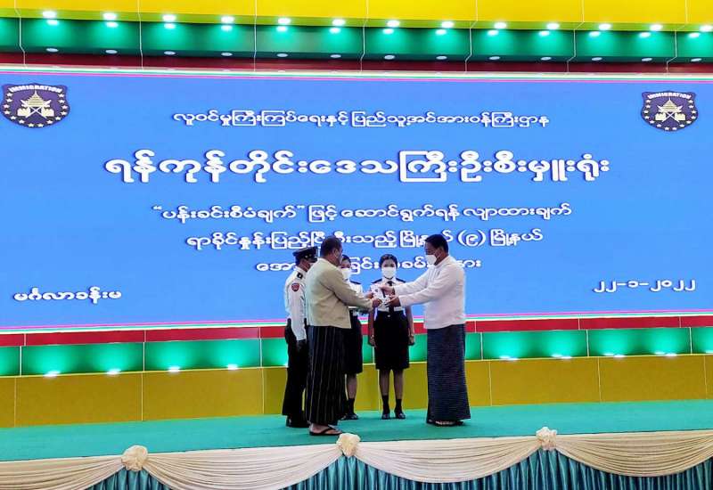ရန်ကုန်တိုင်းဒေသကြီးအတွင်း ပန်းခင်းစီမံချက် ရာနှုန်းပြည့် ဆောင်ရွက်ပြီးစီးသည့် မြို့နယ် (၉) မြို့နယ် အောင်မြင်ခြင်းအခမ်းအနားကို ယနေ့ နံနက်ပိုင်းတွင် ရန်ကုန်တိုင်းဒေသကြီး အစိုးရအဖွဲ့၊ မင်္ဂလာခန်းမ၌ ကျင်းပသည်။