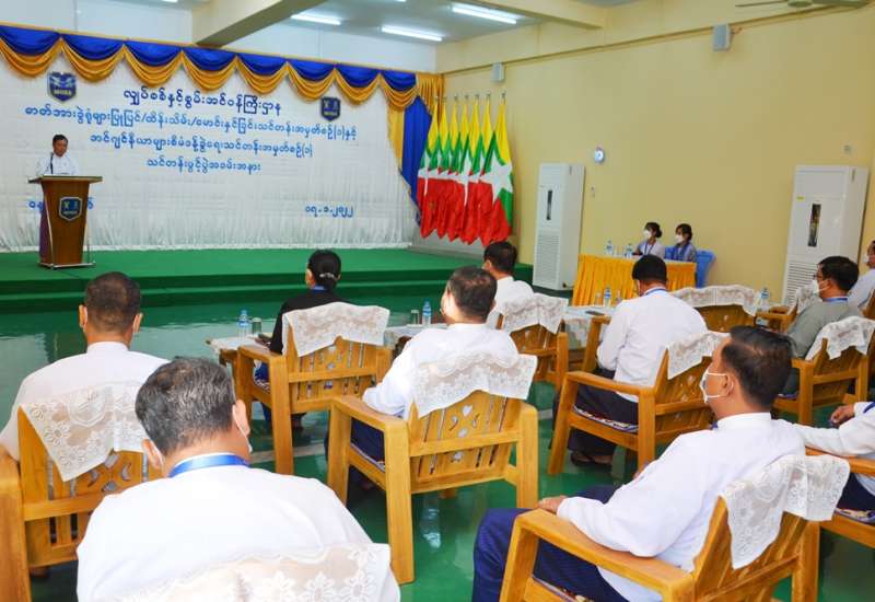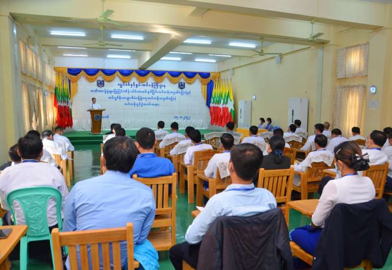 ပြည်ထောင်စုရာထူးဝန်အဖွဲ့ ကွပ်ကဲမှုအောက်ရှိ ဉီးစီးဌာနများနှင့် ဗဟိုဝန်ထမ်း တက္ကသိုလ်များမှ အရာထမ်း၊ အမှုထမ်းများဖြင့် ဆောင်ရွက်ခဲ့သော ဖွံ့ဖြိုး တိုးတက်မှု အလားအလာကောင်း တစ်ရပ်၏ ပြယုဂ်-ခေါင်းဆောင်မှု အရင်းအမြစ် တည်ဆောက်ခြင်းဆိုင်ရာ ဒုတိယအကြိမ် အလုပ်ရုံဆွေးနွေးပွဲ ပိတ်ပွဲ အခမ်းအနားကို ယနေ့ ညနေ ၄ နာရီက ကိုဗစ်-၁၉ ရောဂါဆိုင်ရာ ထုတ်ပြန်ထားရှိသော စည်းကမ်း သတ်မှတ်ချက်များနှင့်အညီ ပြည်ထောင်စု ရာထူးဝန် အဖွဲ့ရုံး စုပေါင်းခန်းမ၌ ကျင်းပသည်။
