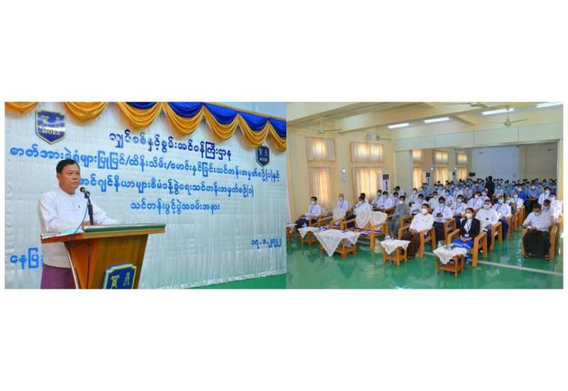 ဝန်ထမ်းများအားလုံး အေးချမ်းပျော်ရွှင်ပြီး လုံခြုံစိတ်ချစွာ လုပ်ငန်းတာဝန်များကို အပြည့်အဝ တာဝန်ထမ်းဆောင်နိုင်ရန်နှင့် လုံခြုံရေးဆိုင်ရာ နည်းစနစ်များ/နည်းဗျူဟာများကို နားလည်သိရှိပြီး စနစ်တကျ စီမံဆောင်ရွက်နိုင်စေရန်ရည်ရွယ်၍ အားကစားနှင့်လူငယ်ရေးရာဝန်ကြီးဌာန၊ အားကစားနှင့်ကာယပညာဦးစီးဌာန "လုံခြုံရေးသင်တန်းအမှတ်စဉ် (၁/၂၀၂၂)" သင်တန်းဖွင့်ပွဲ အခမ်းအနားကို ယနေ့နံနက်ပိုင်းတွင် နေပြည်တော် အားကစားလေ့ကျင့်ရေးစခန်း (Gold Camp)ရှိ (Multipurpose Hall)တွင် ကျင်းပသည်။