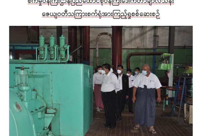 စက်မှုဝန်ကြီးဌာန၊ ပြည်ထောင်စုဝန်ကြီး ဒေါက်တာချာလီသန်းသည် ဒီဇင်ဘာ(၃၁) ရက် နံနက်ပိုင်းတွင် ပဲခူးတိုင်းဒေသကြီး၊ ဖြူးမြို့နယ်ရှိ ဇေယျဝတီ သကြားစက်ရုံသို့ ရောက်ရှိရာ စက်ရုံတာဝန်ခံက လုပ်ငန်းလည်ပတ် ဆောင်ရွက်နေမှုတို့ကို ရှင်းလင်းတင်ပြသည်။