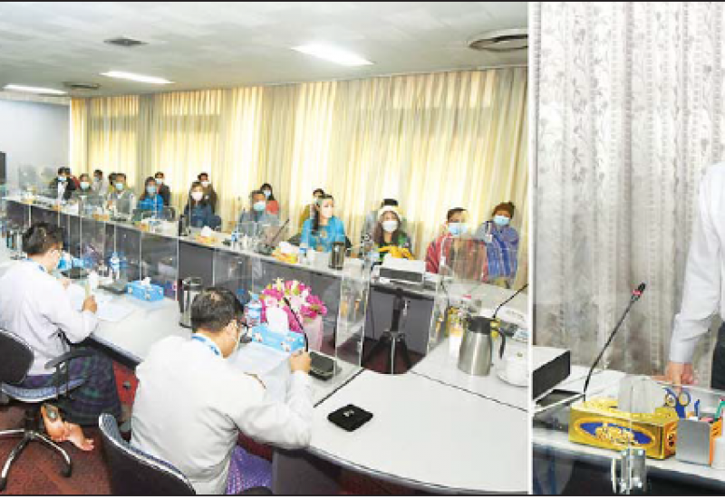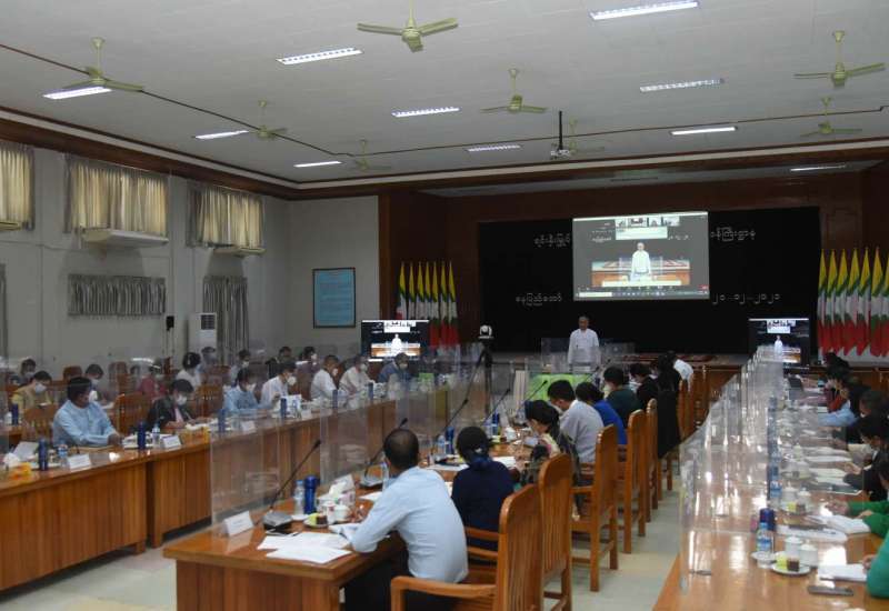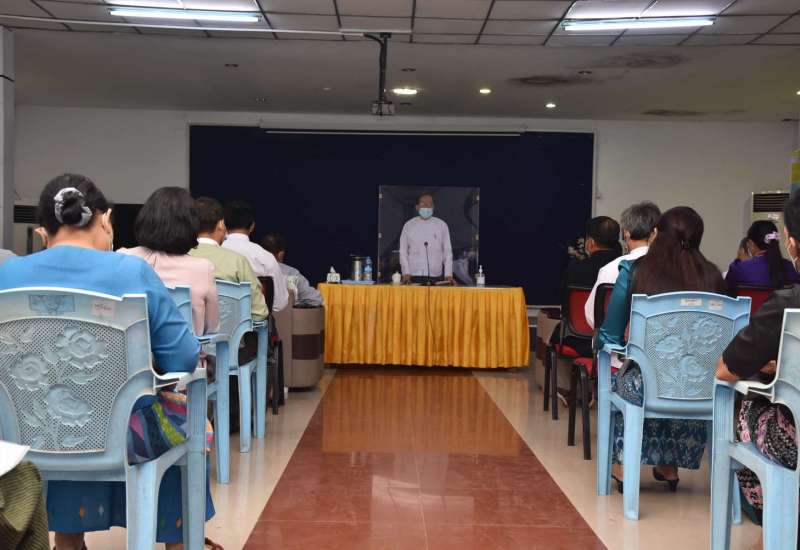 ကျန်းမာရေးဝန်ကြီးဌာန၊ ပြည်ထောင်စုဝန်ကြီး ပါမောက္ခ ဒေါက်တာသက်ခိုင်ဝင်းသည် ရန်ကုန်ပြည်သူ့ဆေးရုံကြီး၊ ပါမောက္ခချုပ် ဒေါက်တာသီတာလှ (ဆေးရုံအုပ်ကြီး/ ကုသရေး)၊ ဒေါက်တာထွန်းမင်း၊ ဒုတိယညွှန်ကြားရေးမှူးချုပ်၊ ရန်ကုန်တိုင်းဒေသကြီး ပြည်သူ့ကျန်းမာရေး နှင့်ကုသရေးဦးစီးဌာန၊ ရန်ကုန်တိုင်းဒေသကြီးအတွင်းရှိ ပြည်သူ့ဆေးရုံကြီးများမှ ဆေးရုံအုပ်ကြီး များ၊ တိုင်းဒေသကြီး/ ခရိုင်/မြို့နယ်ပြည်သူ့ ကျန်းမာရေးနှင့် ကုသရေးဦးစီး ဌာနမှူးများနှင့် ယမန်နေ့ မွန်းလွဲ ၁ နာရီခွဲတွင် ရန်ကုန်တိုင်းဒေသကြီး ပြည်သူ့ကျန်းမာရေးနှင့် ကုသရေးဦးစီးဌာန၊ အစည်းအဝေးခန်းမ၌ ကိုဗစ်-၁၉ ရောဂါကာကွယ်ထိန်းချုပ်၊ ကုသရေးအတွက် ကြိုတင်ပြင်ဆင်ခြင်း ဆိုင်ရာလုပ်ငန်းညှိနှိုင်း အစည်းအဝေးကို ဆောင်ရွက် သည်။