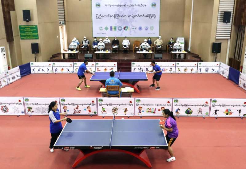 စိုက်ပျိုးရေး၊မွေးမြူရေးနှင့်ဆည်မြောင်းဝန်ကြီးဌာန ပြည်ထောင်စုဝန်ကြီးဖလား ပထမအကြိမ် စားပွဲတင်တင်းနစ် အားကစားပြိုင်ပွဲ ဖွင့်ပွဲအခမ်းအနားကို ယနေ့တွင် နေပြည် တော် ဇေယျာသီရိမြို့နယ်ရှိ စိုက်ပျိုးပညာပေးရေးနှင့် ကျေးလက်ဖွံ့ဖြိုးရေးသင်တန်း ကျောင်း (AERDTC) ၌ ကျင်းပသည်။