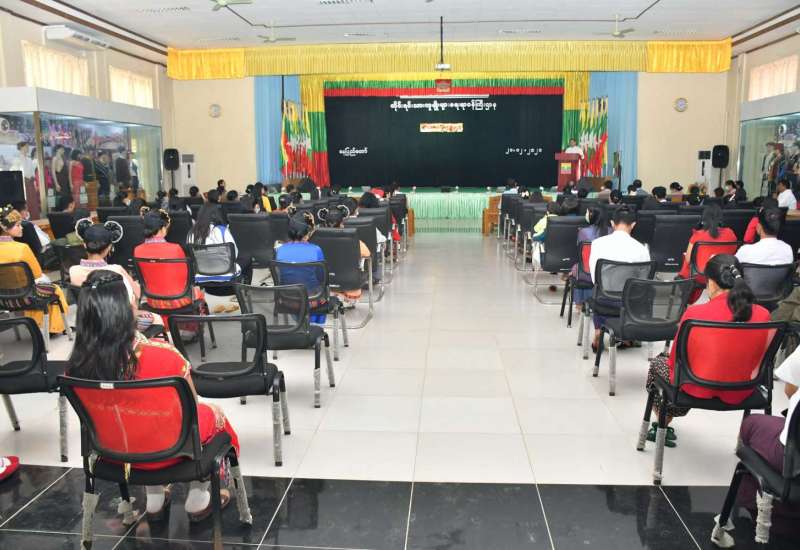 ပြန်ကြားရေးဝန်ကြီးဌာန ပြည်ထောင်စုဝန်ကြီး ဦးမောင်မောင်အုန်းသည် ယနေ့နံနက်ပိုင်းတွင် ရန်ကုန်မြို့ ပြည်လမ်းရှိ မြန်မာ့အသံနှင့် ရုပ်မြင်သံကြား အစည်းအဝေးခန်းမ၌ (၇၅) နှစ်မြောက် စိန်ရတု ပြည်ထောင်စုနေ့ ဂုဏ်ပြု “တူယှဉ်နွှဲပျော် ဂီတပွဲတော်" သီချင်းဆိုပြိုင်ပွဲ အုပ်စု (ဂ) တွင် ယှဉ်ပြိုင်မည့် တိုင်းဒေသကြီးနှင့် ပြည်နယ်များမှ ပြိုင်ပွဲဝင် ကိုးဦးအား တွေ့ဆုံနှုတ်ဆက်သည်။