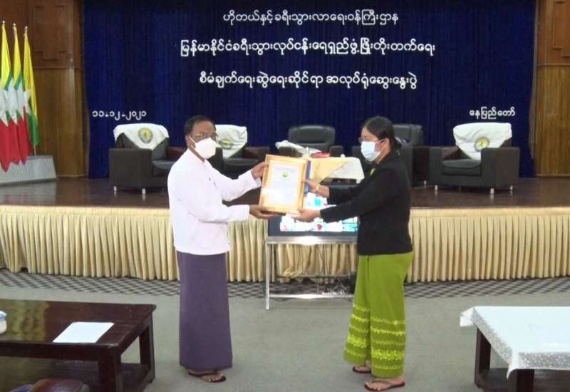 သမဝါယမနှင့် ကျေးလက်ဖွံ့ဖြိုးရေးဝန်ကြီးဌာန၊ ပြည်ထောင်စုဝန်ကြီး ဦးလှမိုးနှင့် နေပြည်တော်ကောင်စီ ဥက္ကဋ္ဌတို့သည် ယနေ့နံနက်ပိုင်းက နေပြည်တော်ကောင်စီနယ်မြေ စံပြ ကျေးရွာ (Smart Village) စီမံကိန်းပါ လယ်ဝေးမြို့နယ်၊ သော်မှော်ကုန်းကျေးရွာ ခန်းမ၌အိမ်တွင်း လျှပ်စစ်သွယ်တန်းမှုပညာဖြင့် လုပ်ငန်းခွင်ဝင်ရောက် နိုင်စေရန်နှင့် တစ်ပိုင်တစ်နိုင်လုပ်ငန်းများ ထူထောင်နိုင်စေရန် ရည်ရွယ်ဖွင့် လှစ်ပြီး "အခြေခံအိမ်တွင်း လျှပ်စစ်သွယ်တန်းနည်းသင်တန်း" ဖွင့်ပွဲအခမ်းအနားသို့ တက်ရောက်သည်။