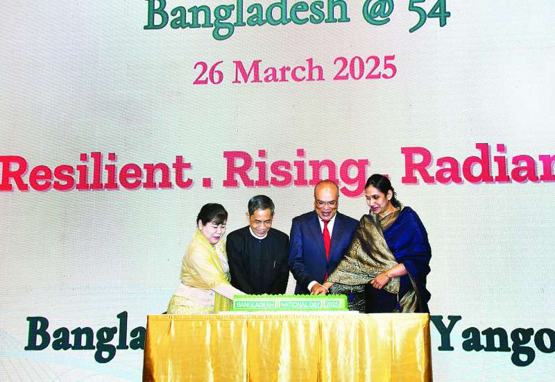 ဘင်္ဂလားဒေ့ရှ်နိုင်ငံ၏ (၅၄) နှစ်မြောက် လွတ်လပ်ရေးနေ့နှင့် အမျိုးသားနေ့အထိမ်းအမှတ်ဧည့်ခံပွဲကို ယနေ့ ည ၇ နာရီတွင် ရန်ကုန်မြို့ Lotte Hotel ၌ ကျင်းပရာ နိုင်ငံတော်စီမံအုပ်ချုပ်ရေးကောင်စီဥက္ကဋ္ဌရုံးဝန်ကြီးဌာန (၂) ပြည်ထောင်စုဝန်ကြီး ဦးကိုကိုလှိုင်နှင့် ဇနီးတို့ တက်ရောက်ကြသည်။