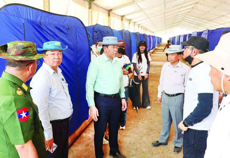 အမျိုးသားသဘာဝဘေးအန္တရာယ်ဆိုင်ရာ စီမံခန့်ခွဲမှုကော်မတီ ဒုတိယဥက္ကဋ္ဌ (၁) ပြည်ထဲရေးဝန်ကြီးဌာန ပြည်ထောင်စုဝန်ကြီး ဒုတိယဗိုလ်ချုပ်ကြီး ထွန်းထွန်းနောင်သည် နေပြည်တော်ကောင်စီဥက္ကဋ္ဌ ဦးသန်းထွန်းဦး၊ ဒုတိယဝန်ကြီး ဗိုလ်ချုပ် အောင်ကျော်ကျော်၊ ဒုတိယမြို့တော်ဝန် ဦးမောင်မောင်၊ တာဝန်ရှိသူများနှင့်အတူ ယနေ့နံနက်ပိုင်းတွင် နေပြည်တော်ကောင်စီနယ်မြေအတွင်း ငလျင်ဘေးဒဏ်သင့်ပြည်သူများနှင့် ဝန်ထမ်းမိသားစုများနေထိုင်နိုင်ရန် ယာယီတည်းခိုရေးစခန်းများ တည်ဆောက်နေမှုနှင့် ဝင်ရောက်နေထိုင်မှုအခြေအနေတို့ကို သွားရောက်ကြည့်ရှုစစ်ဆေးသည်။