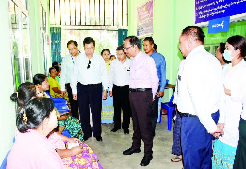 ကျန်းမာရေးဝန်ကြီးဌာန ပြည်ထောင်စုဝန်ကြီး ပါမောက္ခဒေါက်တာသက်ခိုင်ဝင်းသည် ယမန်နေ့နံနက်ပိုင်းတွင် မှော်ဘီမြို့နယ် မြောင်းတကာတိုက်နယ် ဆေးရုံသို့သွားရောက်၍ လူနာဆောင်များ၊ ဓာတ်ခွဲခန်း၊ ဓာတ်မှန်ခန်း၊ ဆေးသိုလှောင်ခန်း၊ ဆေးမှတ်တမ်းဌာန၊ ဆေးရုံဝင်းအတွင်းနှင့် ဆေးကုသရေးလုပ်ငန်းများဆောင်ရွက်မှု၊ ခွဲစိတ်ခန်းပြင်ဆင်ဆောင်ရွက် နေမှုများကို ကြည့်ရှုစစ်ဆေးပြီး ဆေးရုံလုပ်ငန်းများ တိုးတက်စေရေးမှာကြားကာ လူနာများကို အားပေးစကားပြောကြား၍ တိုက်နယ်ဆေးရုံတာဝန်ခံ ဆရာဝန်နှင့် ကျန်းမာရေးဝန်ထမ်းများကို ချီးမြှင့်ငွေများ ပေးအပ်သည်။