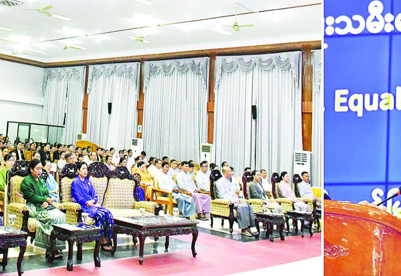 အပြည်ပြည်ဆိုင်ရာအမျိုးသမီးများနေ့အခမ်းအနားကို ယနေ့နံနက်ပိုင်းတွင် နေပြည်တော်ရှိ ရုံးအမှတ် (၂၃) လူမှုဝန်ထမ်း၊ ကယ်ဆယ်ရေးနှင့် ပြန်လည်နေရာချထားရေးဝန်ကြီးဌာန စုပေါင်းအစည်းအဝေးခန်းမ၌ ကျင်းပသည်။