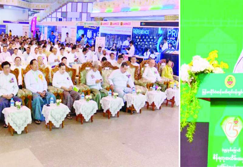 မြန်မာနိုင်ငံဆန်စက်လုပ်ငန်းရှင်များအသင်း၏ (၇၅)နှစ်မြောက် စိန်ရတုအထိမ်းအမှတ် ဖွင့်ပွဲအခမ်းအနားကို ယနေ့နံနက်ပိုင်းတွင် ရန်ကုန်တိုင်းဒေသကြီး မရမ်းကုန်းမြို့နယ်ရှိ မြန်မာကွန်ဗင်းရှင်းစင်တာ(MCC)၌ ကျင်းပသည်။