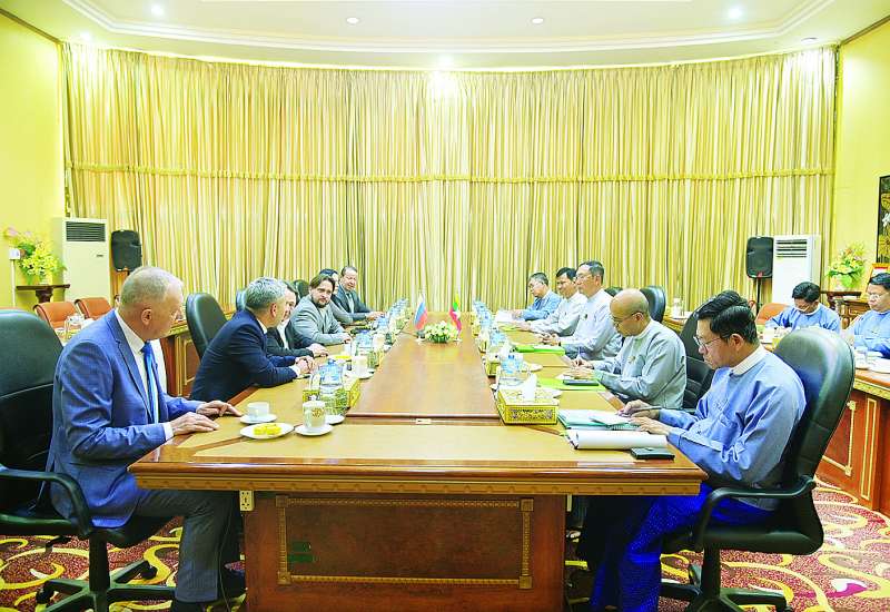 သယံဇာတနှင့်သဘာဝပတ်ဝန်းကျင်ထိန်းသိမ်းရေးဝန်ကြီးဌာန ပြည်ထောင်စုဝန်ကြီး ဦးခင်မောင်ရီသည် ရုရှားဖက်ဒရေးရှင်းနိုင်ငံ “RC-Investments” Foundation မှ Director Mr. Alexander S. SHATIROV အား ယနေ့ညနေပိုင်းတွင် နေပြည်တော်ရှိ ဝန်ကြီးဌာနအစည်းအဝေးခန်းမ၌ လက်ခံတွေ့ဆုံသည်။