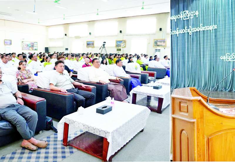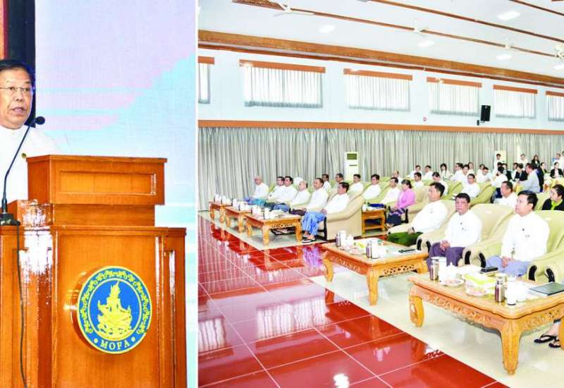 ဧရာဝတီ - ကျောက်ဖရား - မဲခေါင် စီးပွားရေးပူးပေါင်းဆောင်ရွက်မှု မဟာဗျူဟာ (အက်ခ်မက်) အလှည့်ကျဥက္ကဋ္ဌတာဝန် အောင်မြင်စွာထမ်းဆောင်နိုင်ရေး ဝန်ကြီးဌာနများ၏ အခန်းကဏ္ဍနှင့် ပေါင်းစပ်ညှိနှိုင်းမှုမြှင့်တင်ရေး အလုပ်ရုံဆွေးနွေးပွဲကို ယနေ့တွင် နိုင်ငံခြားရေးဝန်ကြီးဌာန လောကနတ်ခန်းမ၌ ကျင်းပသည်။