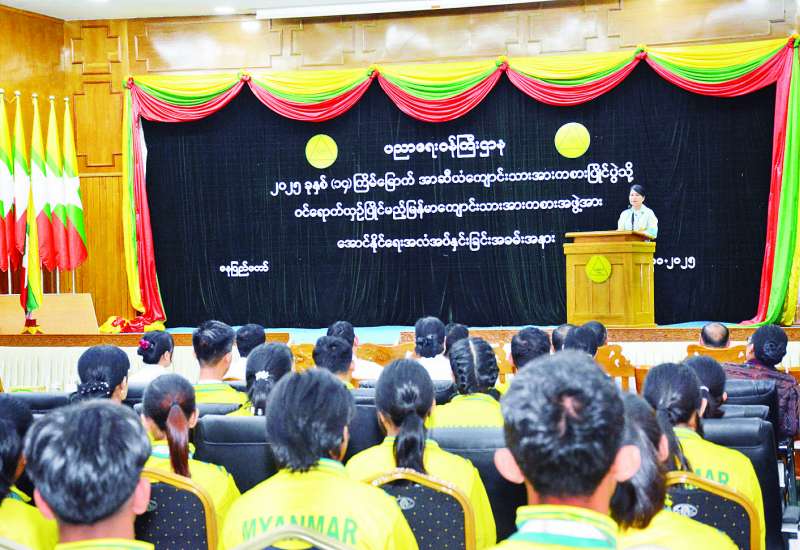 ၂၀၂၅ ခုနှစ် (၁၄) ကြိမ်မြောက် အာဆီယံကျောင်းသားအားကစားပြိုင်ပွဲသို့ ဝင်ရောက်ယှဉ်ပြိုင်မည့် မြန်မာကျောင်းသားအားကစားအဖွဲ့အား အောင်နိုင်ရေးအလံ အပ်နှင်းခြင်းအခမ်းအနားကို ယနေ့ညနေပိုင်းက နေပြည်တော် ရုံးအမှတ် (၁၃) ပညာရေးဝန်ကြီးဌာန အစည်းအဝေးခန်းမ၌ ကျင်းပသည်။