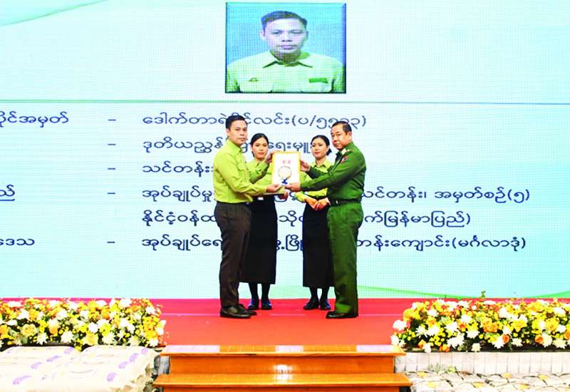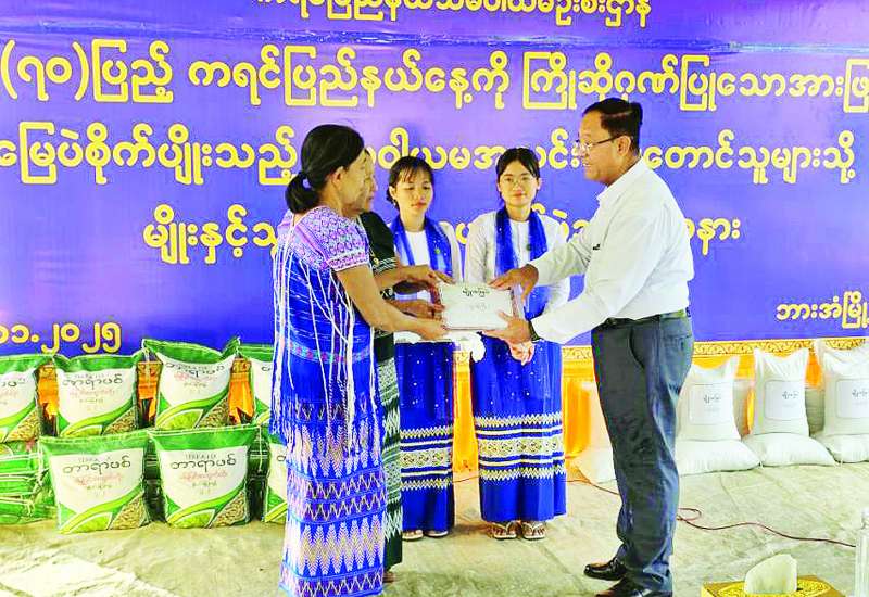 နှစ် (၇၀) ပြည့် ကရင်ပြည်နယ်နေ့ကို ဂုဏ်ပြုသောအားဖြင့် သမဝါယမကဏ္ဍ ဆီထွက်သီးနှံ မြေပဲစိုက်ပျိုးရေးစီမံကိန်းတွင် ပါဝင်ဆောင်ရွက်လျက်ရှိသော အောင်သပြေလယ်ယာနှင့် အထွေထွေစီးပွားရေးသမဝါယမအသင်းမှ အသင်းသားတောင်သူများသို့ မြေပဲမျိုးနှင့် သွင်းအားစုပေးအပ်ပွဲကို ယနေ့နံနက်ပိုင်းက ကော့လှိုက်ကျေးရွာ၌ ကျင်းပသည်။