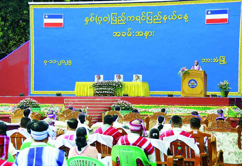ကရင်တိုင်းရင်းသားလူမျိုးတို့၏ နေ့ထူးနေ့မြတ်ဖြစ်သည့် နှစ် (၇၀) ပြည့် ကရင်ပြည်နယ်နေ့အခမ်းအနားကို ယနေ့နံနက်ပိုင်းတွင် ပြည်နယ်အစိုးရအဖွဲ့ရုံးရှေ့ မြက်ခင်းပြင်၌ ကျင်းပရာ နိုင်ငံတော်သမ္မတရုံးဝန်ကြီးဌာန (၁) ပြည်ထောင်စုဝန်ကြီး ဦးတင်အောင်စန်း တက်ရောက်သည်။