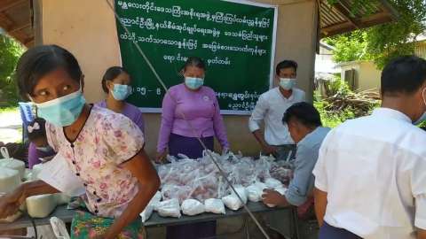 ကိုဗစ်-၁၉ ရောဂါကြိုတင်ကာကွယ်ရေး အသိပညာပေးနှိုးဆော်ခြင်းနှင့် လက်ကမ်းစာစောင်များ ဖြန့်ဝေခြင်းပြုလုပ်