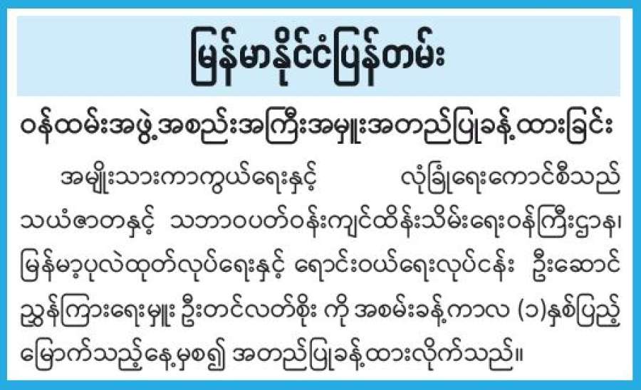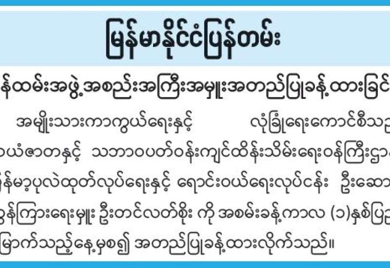 နိုင်ငံတော်တွင် စက်သုံးဆီကို စနစ်တကျသုံးစွဲနိုင်စေရန်နှင့် လေလွင့်ဆုံးရှုံးမှုလျော့နည်းစေရန် ရည်ရွယ်၍ ဒစ်ဂျစ်တယ်နည်းပညာ အခြေပြုဖြန့်ဖြူးရောင်းချသည့်စနစ်ကို ၁၂-၃-၂၀၂၆ ရက်နေ့တွင် စတင်၍ ဆောင်ရွက်ခဲ့ပြီး ၂၇-၃-၂၀၂၆ ရက်နေ့တွင်