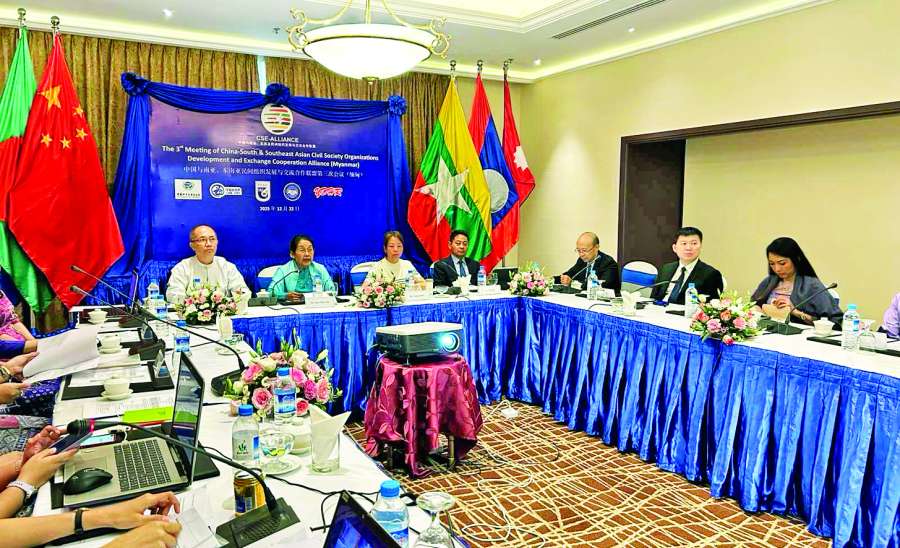 ဒေသတွင်း NGO အဖွဲ့အစည်းများ လူမှုဘဝတိုးတက်ဖွံ့ဖြိုးရေးလုပ်ငန်းများ ပူးပေါင်းဆောင်ရွက်ရန် မြန်မာ၊ တရုတ်၊ ဘင်္ဂလားဒေ့ရှ်၊ ကမ္ဘောဒီးယား၊ လာအို၊ နီပေါ(၆)နိုင်ငံမှ လူမှုရေး အသင်းအဖွဲ့များက ၂၀၂၅ ခုနှစ်အောက်တိုဘာ ၁ ရက်တွင် ကမ္ဘောဒီးယားနိုင်ငံ ဖနွမ်းပင်မြို့၌ စတင်ဖွဲ့စည်းခဲ့သည့် “တရုတ်-တောင်အာရှနှင့် အရှေ့တောင်အာရှ ပြည်သူ့လူမှုရေးအဖွဲ့အစည်းများ ဖွံ့ဖြိုးတိုးတက်ရေးနှင့် အပြန်အလှန် ပူးပေါင်းဆောင်ရွက်ရေးမဟာမိတ်အဖွဲ့ ”(China South & Southeast Asian Civil Society Organizations Development and Exchange Cooperation Alliance) ၏ တတိယအကြိမ်မြောက်ကျင်းပသည့် အွန်လိုင်းအစည်းအဝေးကို မြန်မာနိုင်ငံရှိ မြန်မာ-တရုတ် ပူးပေါင်းဆက်ဆံရေးအသင်းက စီစဉ်လျက် ဒီဇင်ဘာ ၂၂ ရက်တွင် ရန်ကုန်မြို့ ဆီဒိုးနားဟိုတယ်၌ အွန်လိုင်းစနစ်ဖြင့် ကျင်းပသည်။