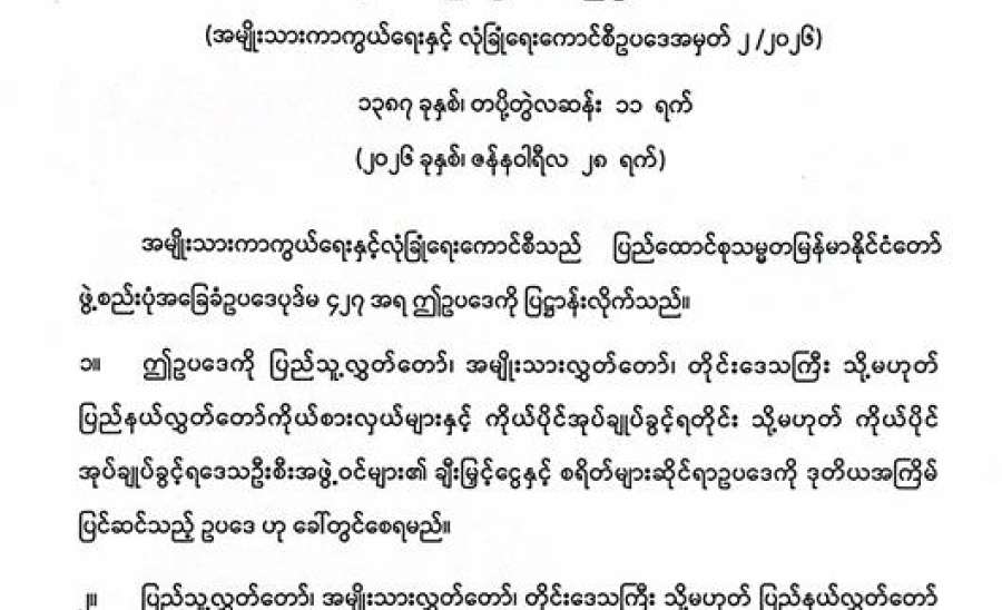 ပြည်သူလူထုသို့ အသိပေးနှိုးဆော်ချက်