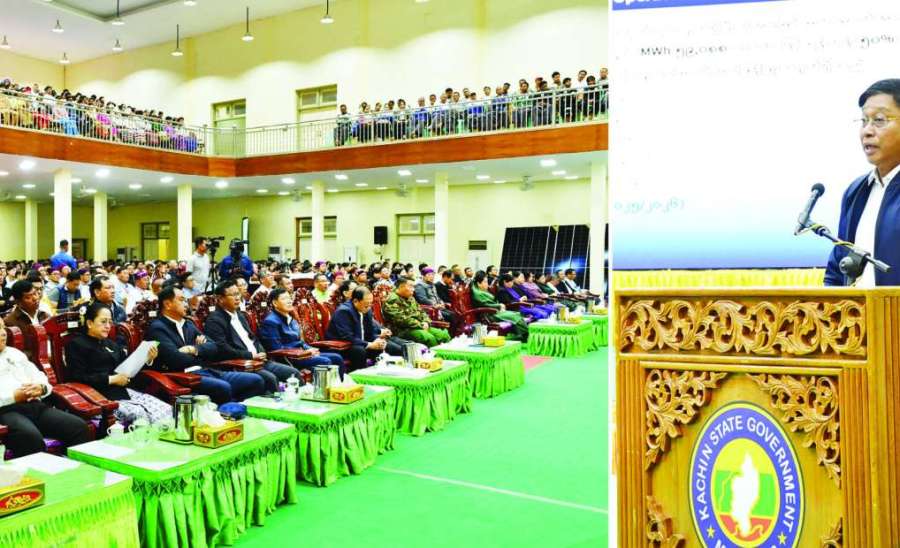 လျှပ်စစ်နှင့်စွမ်းအင်ဖွံ့ဖြိုးရေးကော်မရှင်ဥက္ကဋ္ဌ နိုင်ငံတော်သမ္မတရုံးဝန်ကြီးဌာန(၁) ပြည်ထောင်စုဝန်ကြီး ဦးတင်အောင်စန်း ဦးဆောင်သည့် ကိုယ်စားလှယ်အဖွဲ့သည် ယနေ့နံနက်ပိုင်းတွင် မြစ်ကြီးနားတက္ကသိုလ် ဘွဲ့နှင်းသဘင်ခန်းမ၌ ဒေသခံပြည်သူများနှင့်တွေ့ဆုံပြီး ဧရာဝတီ မြစ်ဆုံ-မြစ်ညာ စီမံကိန်းနှင့်စပ်လျဉ်း၍ ရှင်းလင်းဆွေးနွေးသည်။