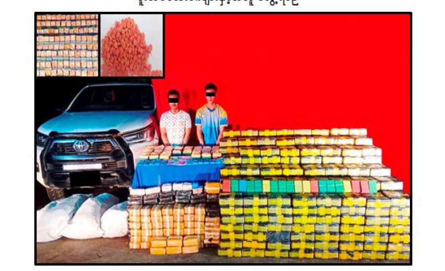 ရှမ်းပြည်နယ်(မြောက်ပိုင်း)၊ နမ့်ခမ်းမှ ကချင်ပြည်နယ်၊ ဝိုင်းမော်သို့ သယ်ဆောင်ရောင်းဝယ်မည့် ခန့်မှန်းတန်ဖိုးငွေကျပ် ၂ ဒသမ ၃ ဘီလီယံကျော်တန်ဖိုးရှိ ဘိန်းဖြူ ၄၇ ကီလိုကျော်နှင့် စိတ်ကြွဆေးပြား ၇ သိန်းကျော် သယ်ဆောင်လာသည့် မော်တ