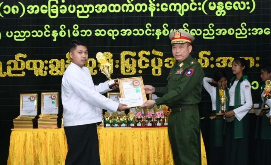 မန္တလေးမြို့ နန်းမြို့တွင်းရှိ အမှတ်(၁၈)အခြေခံပညာအထက်တန်းကျောင်း၏ မိဘဆရာအသင်းနှစ်ပတ်လည်အစည်းအဝေးနှင့် ပညာရည်ထူးချွန်ဆုချီးမြှင့်ပွဲကို ယနေ့နံနက်ပိုင်းတွင် အဆိုပါကျောင်းခန်းမ၌ပြုလုပ်ရာ အလယ်ပိုင်းတိုင်းစစ်ဌာနချုပ် တိုင်းမှ