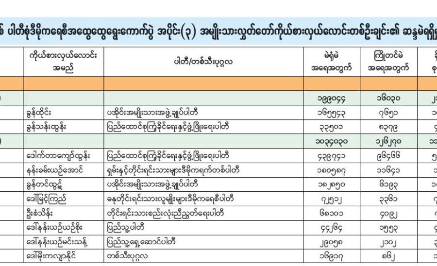 အမျိုးသားလွှတ်တော် (အချိုးကျကိုယ်စားပြုစနစ်)၊ ဧရာဝတီတိုင်းဒေသကြီးမဲဆန္ဒနယ်အမှတ် (၂) နိုင်ငံရေးပါတီများ၏ ကိုယ်စားလှယ်လောင်းရရှိမှုအခြေအနေ