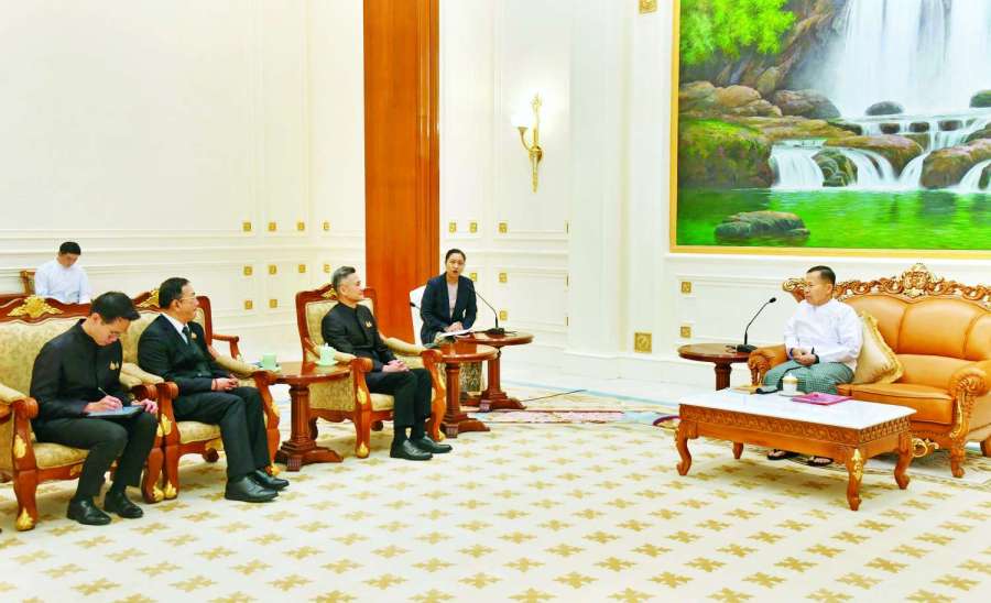 ပြည်ထောင်စုသမ္မတမြန်မာနိုင်ငံတော် ယာယီသမ္မတ နိုင်ငံတော်လုံခြုံရေးနှင့်အေးချမ်းသာယာရေးကော်မရှင်ဥက္ကဋ္ဌ ဗိုလ်ချုပ်မှူးကြီး မင်းအောင်လှိုင်သည် တာဝန်ပြီးဆုံး၍ ပြန်လည်ထွက်ခွာမည့် မြန်မာနိုင်ငံဆိုင်ရာ ထိုင်းနိုင်ငံသံအမတ်ကြီး H.E. Mr. Mongkol Visiststump အား ယနေ့မွန်းလွဲပိုင်းတွင် နေပြည်တော်ရှိ အမျိုးသားကာကွယ်ရေးနှင့်လုံခြုံရေးကောင်စီရုံး၊ ဧည့်ခန်းမ၌ လက်ခံတွေ့ဆုံသည်။