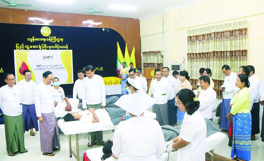 ပို့ဆောင်ရေးနှင့်ဆက်သွယ်ရေးဝန်ကြီးဌာန မြန်မာ့ဆက်သွယ်ရေးလုပ်ငန်း၏ (၁၇)ကြိမ်မြောက် စုပေါင်းသွေးလှူဒါန်းပွဲကို ယနေ့နံနက်ပိုင်းတွင် နေပြည်တော် ခုတင် (၁၀၀၀) အထွေထွေရောဂါကုဆေးရုံကြီး၌ကျင်းပရာ ပို့ဆောင်ရေးနှင့်ဆက်သွယ်ရေးဝန်ကြီး