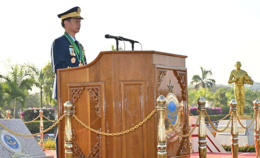 လေယာဉ်မောင်းသင်တန်းအမှတ်စဉ်(၈၇) ကျောင်းဆင်းတောင်ပံအပ်နှင်းပွဲအခမ်းအနားကို ယနေ့နံနက်ပိုင်းတွင် မိတ္ထီလာမြို့၊ လေကြောင်းအတတ်သင်လေတပ်စခန်းဌာနချုပ်၌ ကျင်းပပြုလုပ်ရာ နိုင်ငံတော်လုံခြုံရေးနှင့် အေးချမ်းသာယာရေးကော်မရှင်ဥက္ကဋ္ဌ တပ်မတော်ကာကွယ်ရေးဦးစီးချုပ်ကိုယ်စား ကာကွယ်ရေးဦးစီးချုပ်(လေ) ဗိုလ်ချုပ်ကြီးဇေယျကျော်ထင် စည်သူထွန်းအောင် တက်ရောက်မိန့်ခွန်းပြောကြားသည်။
