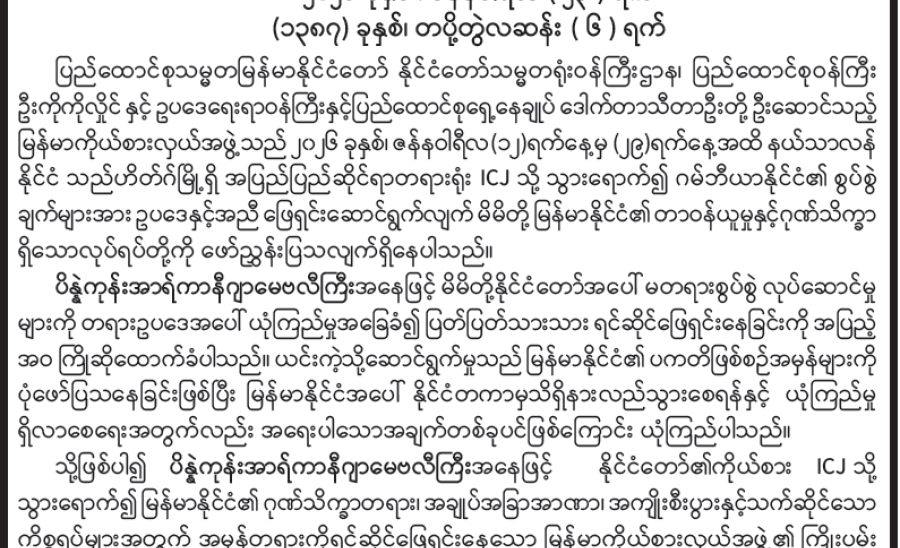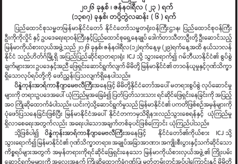 ရခိုင်ပြည်နယ်မှ နေရပ်စွန့်ခွာသူများ ပြန်လည်လက်ခံရေးအတွက် လူဝင်မှုကြီးကြပ်ရေးနှင့်ပြည်သူ့အင်အားဝန်ကြီးဌာနက ဆောင်ရွက်ထားရှိမှုနှင့် ရခိုင်ပြည်နယ်အတွင်း နေထိုင်သည့် ဘင်္ဂါလီများကို နိုင်ငံတော်အစိုးရက ကူညီစောင့်ရှောက်ပေးလျက်