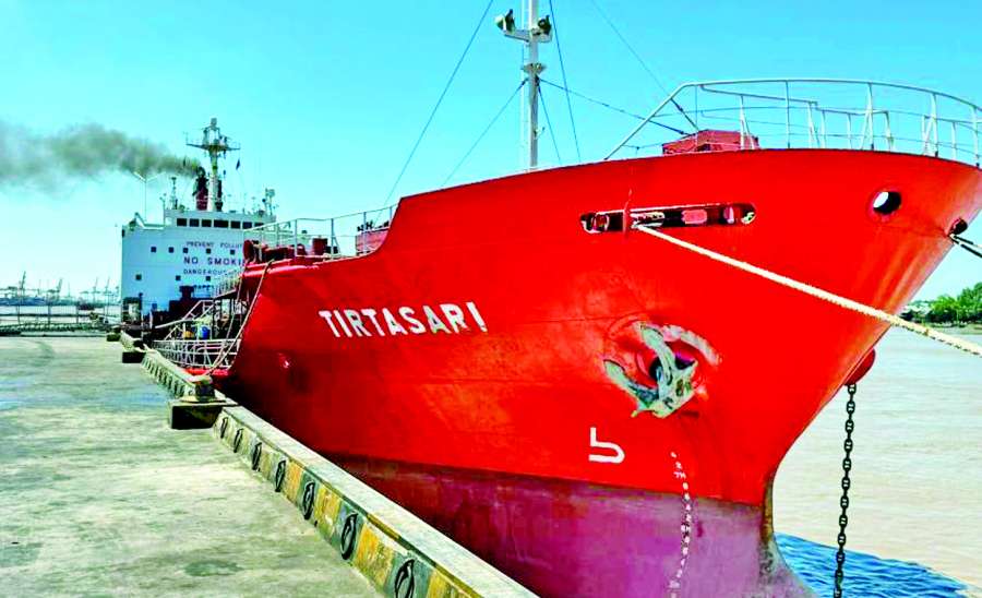 ပြည်တွင်းစားသုံးဆီဖူလုံမှုရှိစေရန်နှင့် စက်မှုကုန်ထုတ်လုပ်ငန်းများအတွက် လိုအပ်သောကုန်ကြမ်းများ အချိန်မီဖြန့်ဖြူးနိုင်ရန်ရည်ရွယ်၍ MT TIRTASARI အမည်ရှိ ဆီတင်သင်္ဘောကြီးသည် ရန်ကုန်မြို့ (K.I.P Port) သို့ မတ် ၂၁ ရက်ညပိုင်းက