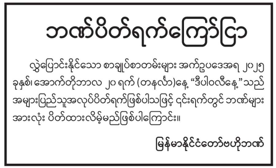 - Oct 14, 2025အခုတလော မောင်စံကြီးတို့ ဝန်ထမ်းလောကမှာ စိုးရိမ်စိတ်နဲ့ ပြောနေကြတဲ့ စကားသံတွေ ကြားနေရပါတယ်။ အထူးသဖြင့်တော့ နေပြည်တော်က ဝန်ကြီးဌာနတွေနဲ့ လက်အောက်ရုံးချုပ်ဌာနတွေမှာ တာဝန်ထမ်းဆောင်နေကြတဲ့ ဝန်ထမ်းတွေရဲ့ မဲပေးခွင့်ကိစ္စပါ။ ရွေးကောက်ပွဲဥပဒေမှာ မိမိအမြဲတမ်းနေထိုင်တဲ့လိပ်စာရှိရာ လဝကပုံစံ (၆၆/၆) ရှိတဲ့ နေရာမှာပဲ မိမိမဲစာရင်းပါမှာဖြစ်လို့ အမြဲတမ်းနေထိုင်ရာနေရာမှာပဲ ပြန်ပြီး မဲပေးရမယ့်သဘောလို့ နားလည်ထားကြလို့ပါ။ တကယ်တော့ ရွေးကောက်ပွဲဥပဒေ၊ နည်းဥပဒေတွေမှာ ဒေသတစ်ခုက အခြားဒေသတစ်ခုကို နိုင်ငံ့တာဝန်အရပဲဖြစ်ဖြစ်၊ အခြားလူမှုရေး၊ စီးပွားရေးအရဖြစ်ဖြစ် ပြောင်းရွှေ့နေထိုင်ရတဲ့သူတွေကို အရင်နေထိုင်တဲ့နေရာကနေ လက်ရှိပြောင်းရွှေ့နေထိုင်တဲ့ နေရာကို မဲစာရင်းပြောင်းနိုင်မယ့် အခွင့်အရေးပေးထားပါတယ်။