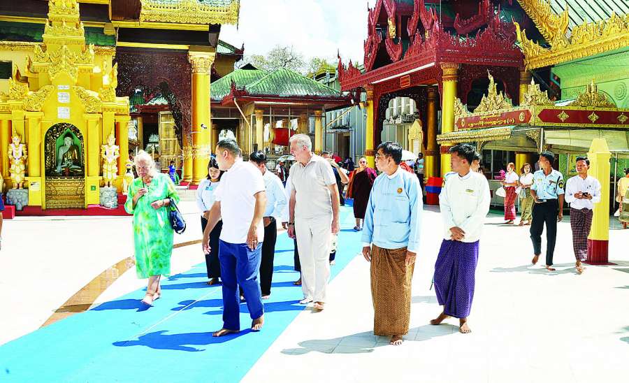 ရုရှားဖက်ဒရေးရှင်းနိုင်ငံ စိန့်ပီတာစဘတ်မြို့အစိုးရအဖွဲ့ဝင် ပြည်ပဆက်ဆံရေးကော်မတီဥက္ကဋ္ဌ Mr.Evgeny Grigoryev နှင့်ဇနီးတို့သည် ယနေ့နံနက်ပိုင်းတွင် ရွှေတိဂုံစေတီတော်မြတ်ကြီးအား သွားရောက်ကြည်ညိုလေ့လာကြသည်။