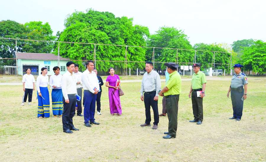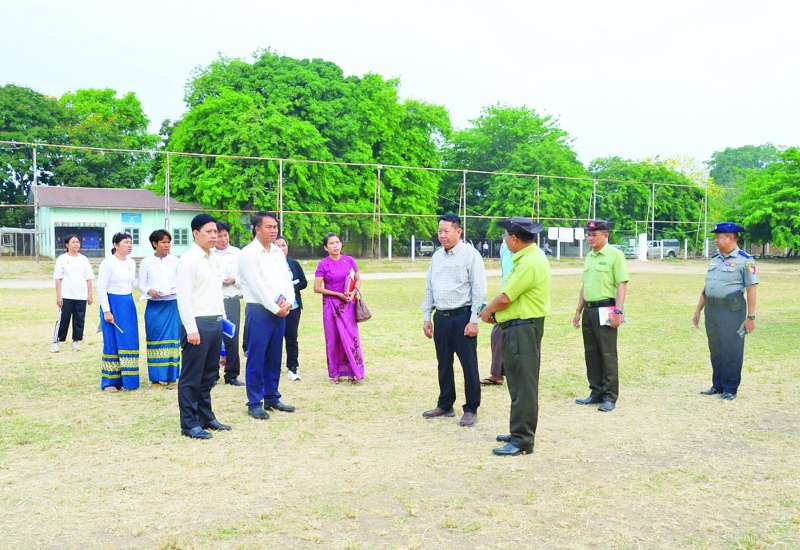 ဆဋ္ဌသင်္ဂါယနာတင်အောင်ပွဲ နှစ်(၇၀)ပြည့် အထိမ်းအမှတ် မဟာမင်္ဂလာအခမ်းအနား ကျင်းပမည့် သမိုင်းဝင်အဆောက်အအုံများနှင့်လမ်းများ ပြုပြင်မွမ်းမံထိန်းသိမ်းရေးလုပ်ငန်း ဆပ်ကော်မတီဥက္ကဋ္ဌ ဆောက်လုပ်ရေးဝန်ကြီးဌာန ဒုတိယဝန်ကြီး ဦးမျိုးမြင့်သည် ရန်ကုန်မြို့တော်ဝန်၊ လျှပ်စစ်၊ စွမ်းအင်၊ စက်မှုနှင့် လမ်းပန်းဆက်သွယ်ရေးဝန်ကြီးနှင့်အတူ လုပ်ငန်းဆောင်ရွက်နေမှုအခြေအနေကို ကြည့်ရှုစစ်ဆေးသည်။