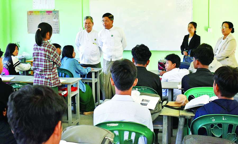 ပြန်ကြားရေးဝန်ကြီးဌာန ဒုတိယဝန်ကြီး ဦးရဲတင့်သည် ယနေ့နံနက်ပိုင်းက ချောက်မြို့နယ် ဂွေးချိုကျေးရွာ အခြေခံပညာနှင့် စက်မှုစိုက်ပျိုးမွေးမြူရေးအထက်တန်းကျောင်းသို့ ရောက်ရှိပြီး ကျောင်းသား ကျောင်းသူများ ပညာသင်ကြားနေမှုများကို လိုက်လံကြည့်ရှုအားပေးသည်။