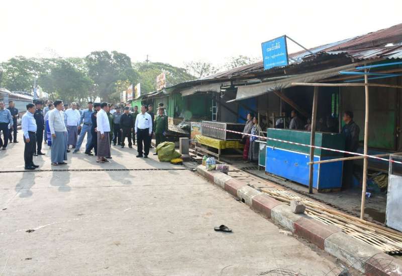 နိုင်ငံတော်ဝန်ကြီးချုပ် ဦးညိုစော ပျဉ်းမနားမြို့နယ်၊ အာဟာရသုခဈေး မီးလောင်မှုဖြစ်ပွားရာသို့ ကွင်းဆင်းကြည့်ရှုစစ်ဆေး