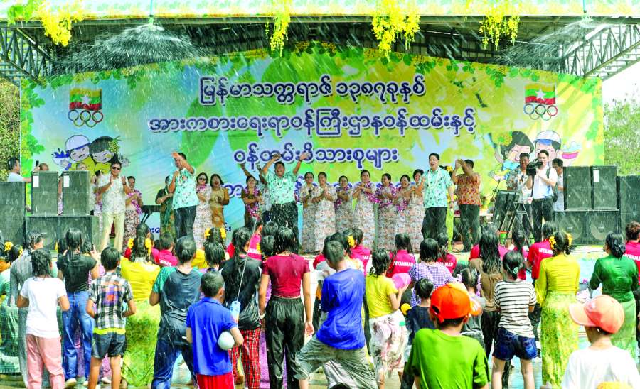 အားကစားရေးရာဝန်ကြီးဌာန မြန်မာ့ရိုးရာယဉ်ကျေးမှု မဟာသင်္ကြန်ပွဲတော်ကို ယမန်နေ့နံနက်ပိုင်းက နေပြည်တော်အားကစားလေ့ကျင့်ရေးစခန်း (Gold Camp) ၌ကျင်းပရာ အားကစားရေးရာဝန်ကြီးဌာန ပြည်ထောင်စုဝန်ကြီး ဦးရဲမြင့်ထွန်းနှင့်ဇနီး၊ လူငယ်ရေးရာဝန်ကြီးဌာန ပြည်ထောင်စုဝန်ကြီး ဒေါက်တာ မောင်သင်း၊ ဒုတိယဝန်ကြီး ဦးစစ်နိုင်နှင့်ဇနီး၊ အမြဲတမ်းအတွင်းဝန်နှင့်ဇနီး၊ ညွှန်ကြားရေးမှူးချုပ်များ၊ ဒုတိယအမြဲတမ်းအတွင်းဝန်၊ ဒုတိယညွှန်ကြားရေးမှူးချုပ်များနှင့် တာဝန်ရှိသူများ၊ ဝန်ထမ်းများနှင့် ဝန်ထမ်းမိသားစုဝင်များ ပျော်ရွှင်စွာပါဝင်ဆင်နွှဲကြသည်။