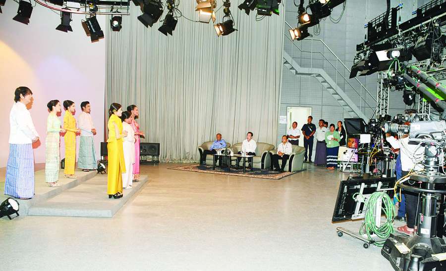 ပြန်ကြားရေးဝန်ကြီးဌာန ပြည်ထောင်စုဝန်ကြီး ဦးမောင်မောင်အုန်းသည် ယနေ့ညနေပိုင်းတွင် ရန်ကုန်မြို့ ပြည်လမ်းရှိ မြန်မာ့အသံနှင့်ရုပ်မြင်သံကြား၌ ၂၀၂၅ ခုနှစ် ပါတီစုံဒီမိုကရေစီအထွေထွေ ရွေးကောက်ပွဲကြီး အောင်မြင်စွာကျင်းပနိုင်ရန်အတွက် တိုင်းရင်းသားပြည်သူလူထုတစ်ရပ်လုံးက ဝိုင်းဝန်းကြိုးပမ်းဆောင်ရွက်နေမှုတွင် မြန်မာနိုင်ငံဂီတအစည်းအရုံး (ဗဟို) အစီအစဉ်ဖြင့် အသိပညာပေးနှိုးဆော်ရေး ရွေးကောက်ပွဲလှုံ့ဆော်တေး ရိုက်ကူးနေမှုကို ကြည့်ရှုအားပေးသည်။