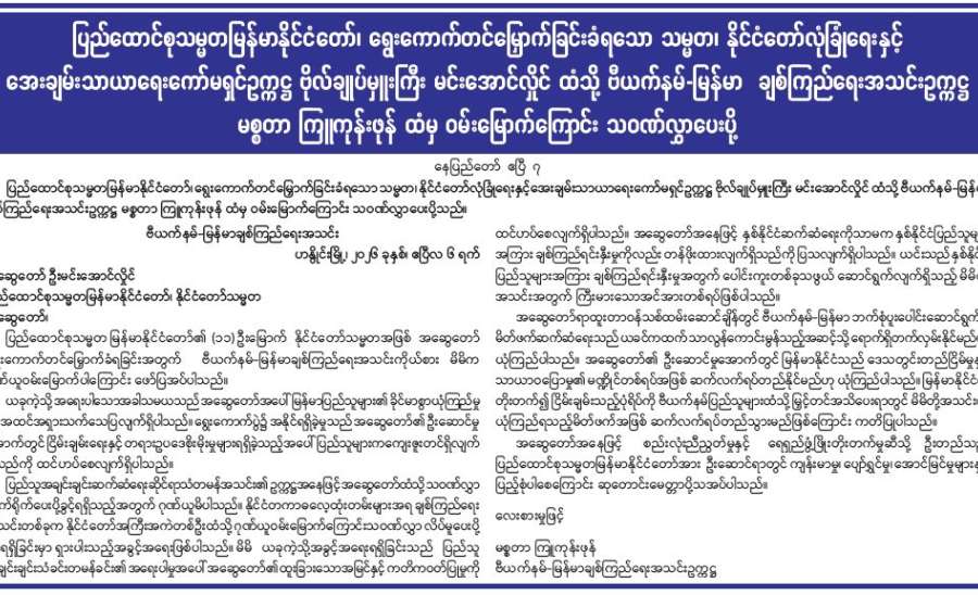 Apr 06, 2026ဧပြီလ ၃ ရက်မှာ ပြည်ပအခြေစိုက် သတင်းဌာနတစ်ခုဖြစ်တဲ့ CNA သတင်းဌာနက မြန်မာနိုင်ငံရဲ့ နိုင်ငံရေးဖြစ်ပေါ်တိုးတက်မှုများနဲ့ပတ်သက်ပြီး အရှိတရားကို မျက်ကွယ်ပြုကာ “မြန်မာစစ်ခေါင်းဆောင် ဦးမင်းအောင်လှိုင်အား စစ်တပ်လိုလားသော လွှတ်တော်ကသမ္မတအဖြစ် ရွေးချယ်တင်မြှောက်” (Myanmar junta chief Min Aung Hlaing elected president by pro-military parliament) ဆိုတဲ့ ခေါင်းစဉ်နဲ့ ‘‘၂၀၂၁ ခုနှစ်၊ ဖေဖော်ဝါရီလတွင် အရပ်သားအစိုးရထံမှ အာဏာသိမ်းယူခဲ့ကြောင်း၊ ၂၀၂၅ ရွေးကောက်ပွဲသည် အဓိကအတိုက်အခံအင်အားစုများ ပါဝင်ခွင့်မရဘဲ ကျင်းပခဲ့ခြင်းဖြစ်ပြီး နိုင်ငံတကာအသိုင်းအဝိုင်းကလည်း ထိုရွေးကောက်ပွဲကို “တရားမျှတမှုမရှိသောပြပွဲ” အဖြစ် ဝေဖန်ရှုတ်ချလျက်ရှိကြောင်း၊ အင်အားကြီးမားသော ပြည်ထောင်စုကြံ့ခိုင်ရေးနှင့် ဖွံ့ဖြိုးရေးပါတီမှ လွှတ်တော်ကိုယ်စားလှယ်များနှင့် စစ်တပ်မှ ခန့်အပ်ထားသော တပ်မတော်သား လွှတ်တော် ကိုယ်စားလှယ်များပူးပေါင်းကာ ဦးမင်းအောင်လှိုင်ကို ထောက်ခံခဲ့ကြတာကြောင့် မဲအပြတ်အသတ်ဖြင့် အနိုင်ရရှိခဲ့ခြင်းဖြစ်ကြောင်း” စသည်ဖြင့် မဟုတ်မမှန်ရေးသားဖော်ပြခဲ့တာကို တွေ့ရပါတယ်။